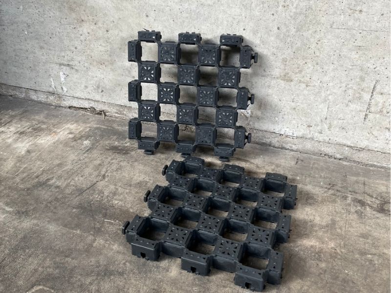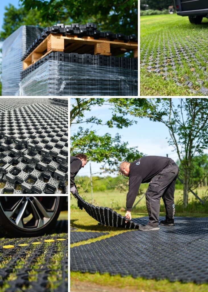 Ja. Das Material besteht aus recyceltem PE, ist zu 100 % recycelbar und wird mit erneuerbarer Energie (teilweise eigenerzeugt) produziert. Gleichzeitig ermöglicht die Lösung grüne Flächen und die natürliche Versickerung von Regenwasser.