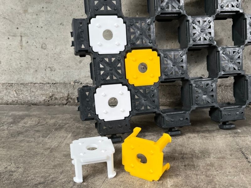 Die E35 Small Markers ermöglichen eine einfache und effiziente Markierung von z. B. Parkbuchten oder Zugangsbereichen. Dank des sicheren Klicksystems lassen sie sich nahtlos in die Gitterstruktur integrieren, was für hohe Stabilität und lange Haltbarkeit sorgt.